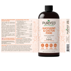 Purived Succulent and Cactus Food is a super concentrate, gentle liquid nourishment for your favorite desert-dwellers. It contains key essential plant nutrients and micronutrients that feed instantly and are ideal for all types of potted succulents and cacti, indoors or out.