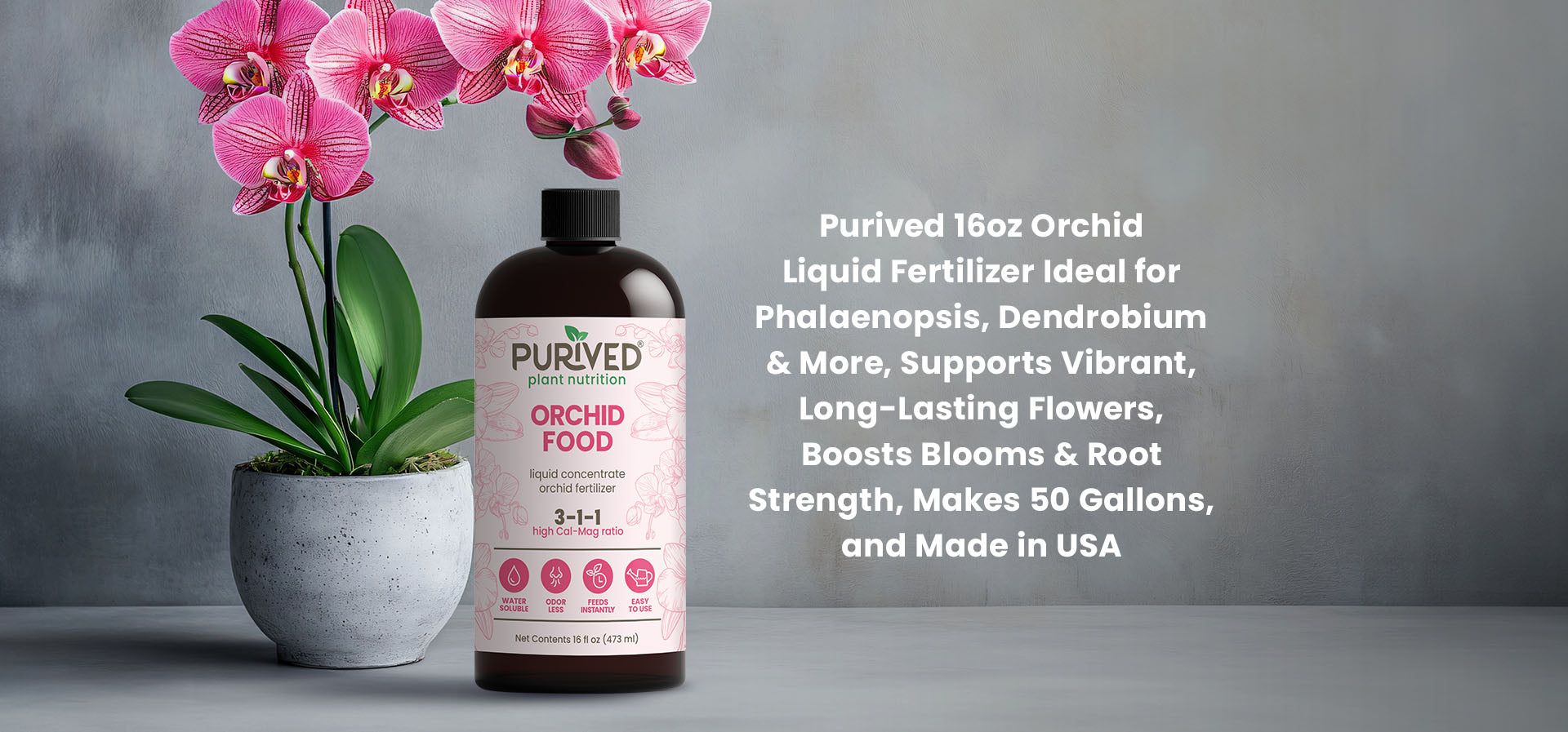 Purived Orchid Food is odorless, water-soluble, feeds instantly & is so easy to use. Great for: Phalaenopsis (Moth Orchid), Cattleya (Corsage Orchid), Dendrobium (Cane Orchid), Oncidium (Dancing Lady Orchid), Vanda, Paphiopedilum (Lady’s Slipper Orchid), Miltoniopsis (Pansy Orchid), Cymbidium (Boat Orchid), Epidendrum (Reed-Stem Orchid), and more!