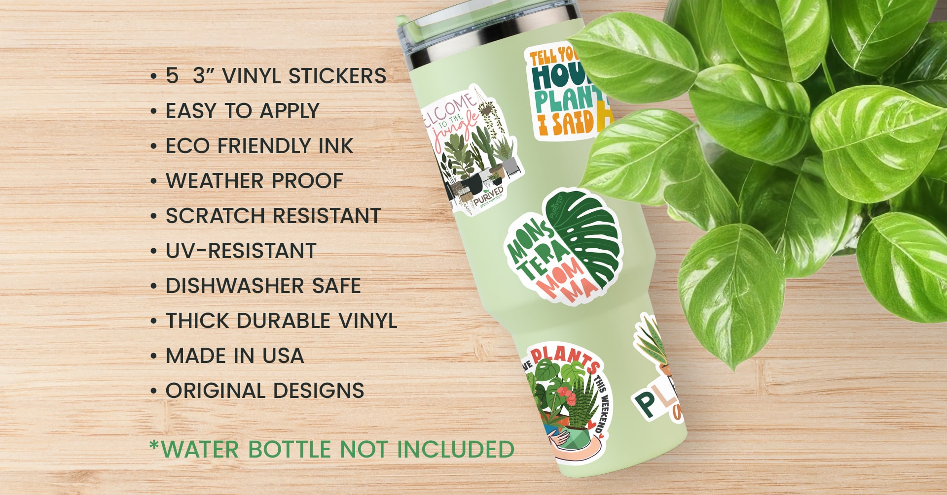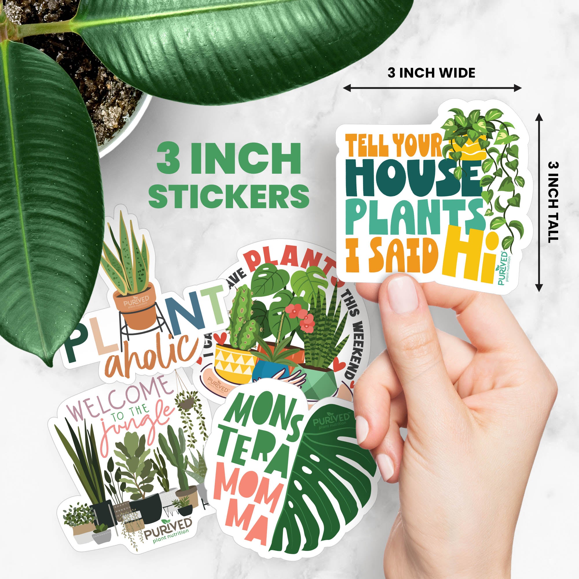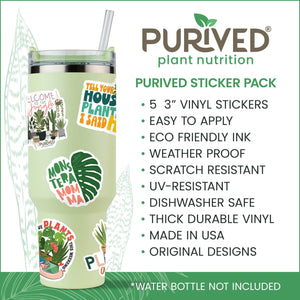 Show off your love for houseplants with the Purived Sticker Pack! Designed for plant enthusiasts and proud members of the thriving Purived Plant Nutrition community, this set includes 5 premium 3-inch vinyl stickers perfect for personalizing your favorite items. Made from thick, durable vinyl and printed with eco-friendly ink, these stickers are weather-proof, scratch-proof, and dishwasher safe, ensuring they stay vibrant no matter where you stick them. Whether you’re decorating your water bottle, laptop, car, or phone case, these stickers are a stylish way to showcase your passion for houseplants.